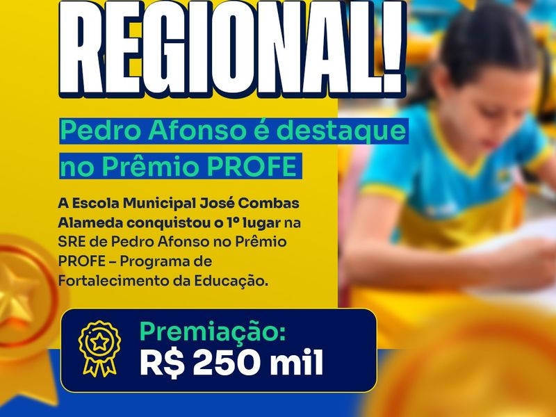 A rede municipal de ensino de Pedro Afonso celebra uma conquista histórica. A Escola Municipal José Combas Alameda alcançou o topo do pódio na jurisdição da Superintendência Regional de Educação (SRE) de Pedro Afonso, garantindo o 1º lugar no prestigiado Prêmio PROFE (Programa de Fortalecimento da Educação).