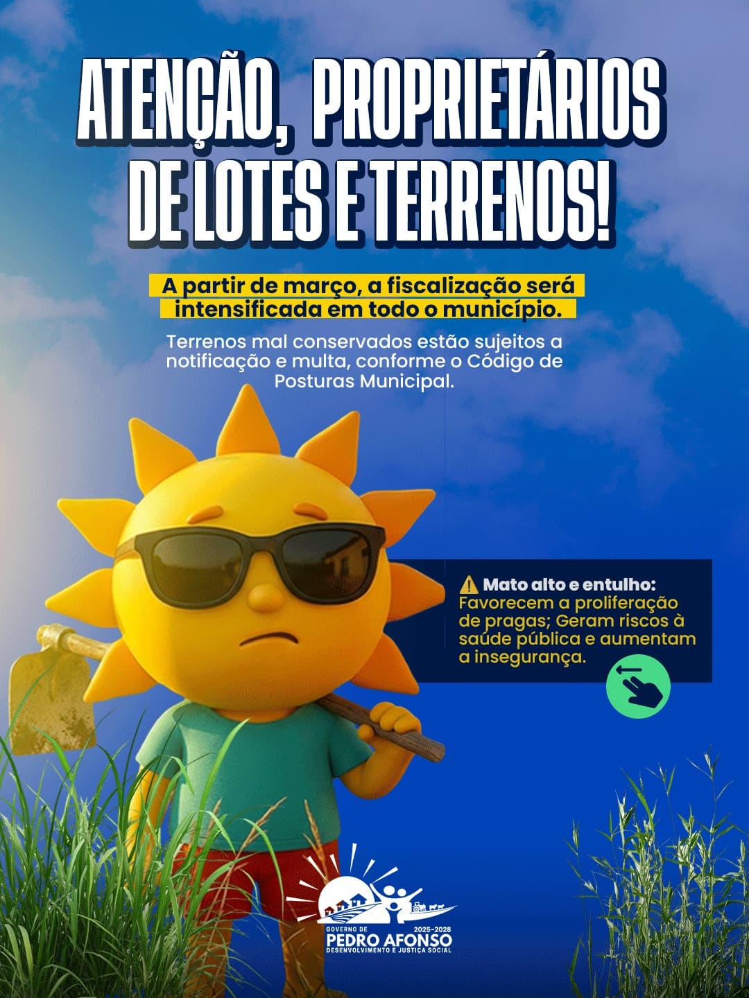 A Prefeitura de Pedro Afonso emite um alerta importante aos proprietários de lotes e terrenos baldios no município. Com o objetivo de manter a cidade limpa e evitar a proliferação de doenças e insetos, a fiscalização municipal intensificará a vistoria em áreas particulares.