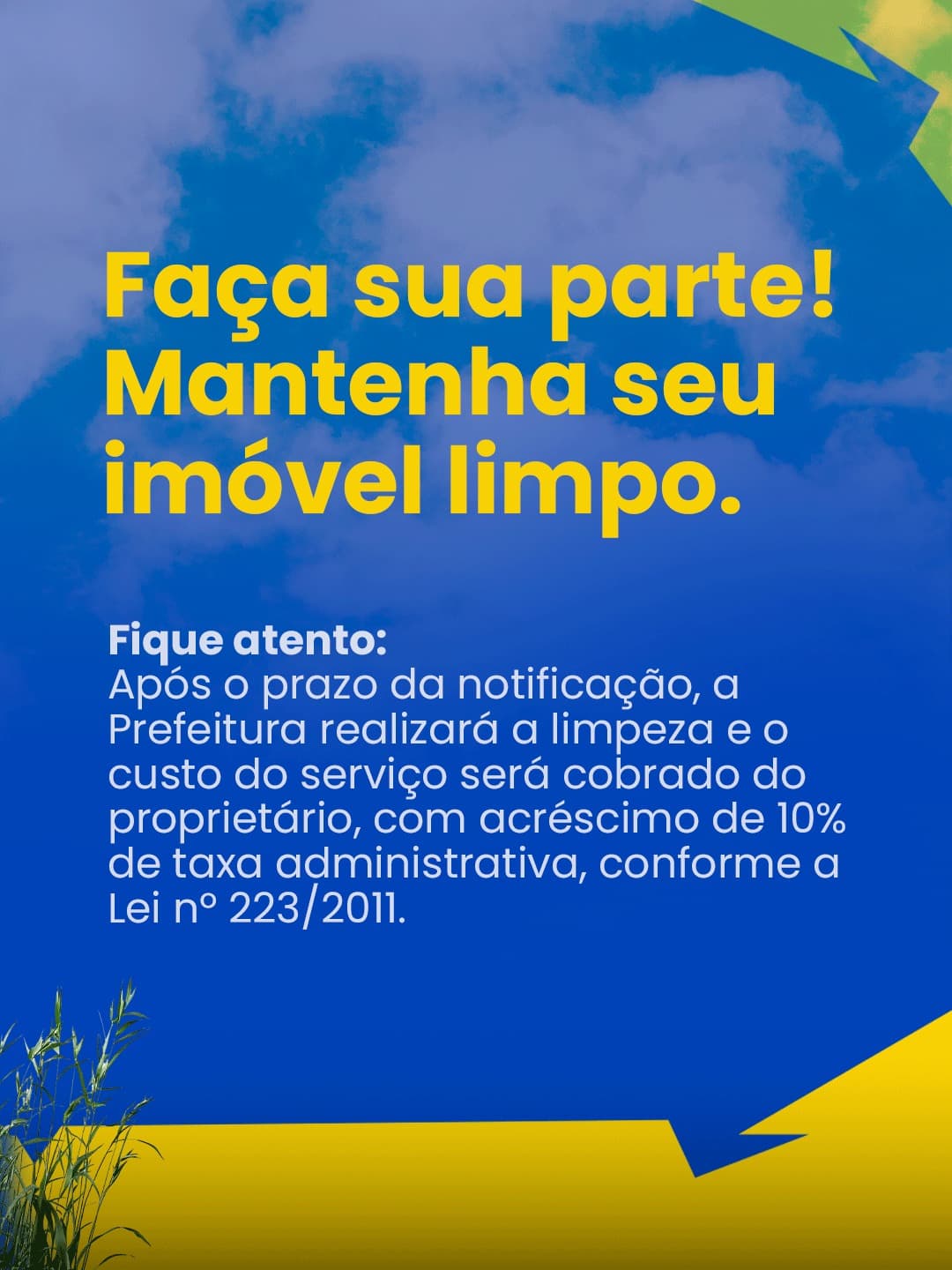 Terrenos que forem encontrados em mau estado de conservação, com mato alto ou acúmulo de lixo, serão devidamente notificados. Caso as providências de limpeza não sejam tomadas pelos proprietários após o aviso, estes estarão sujeitos à aplicação de multas, conforme a legislação vigente. A colaboração de todos é essencial para a manutenção da organização urbana.