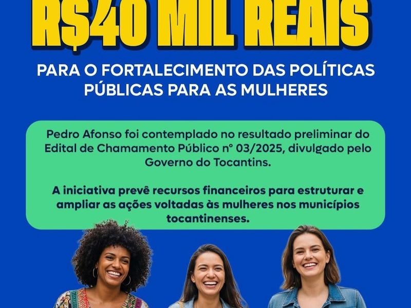 A Secretaria de Assistência Social, da Mulher e do Trabalho de Pedro Afonso celebra uma importante conquista para a rede de proteção e apoio feminino. O município foi contemplado no resultado preliminar do Edital de Chamamento Público nº 03/2025, divulgado pelo Governo do Estado do Tocantins.