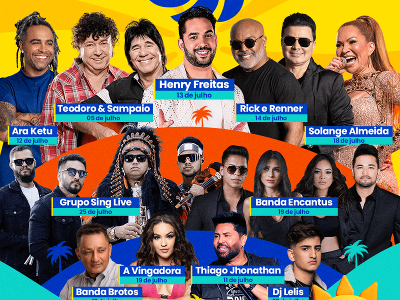 Na programação musical, o município aposta em nomes consagrados da música brasileira, como Rick & Renner, Solange Almeida, o grupo Araketu e o cantor Henry Freitas, apontado como uma das atrações mais aguardadas deste verão, com seu repertório que mistura forró, pop e outros ritmos.