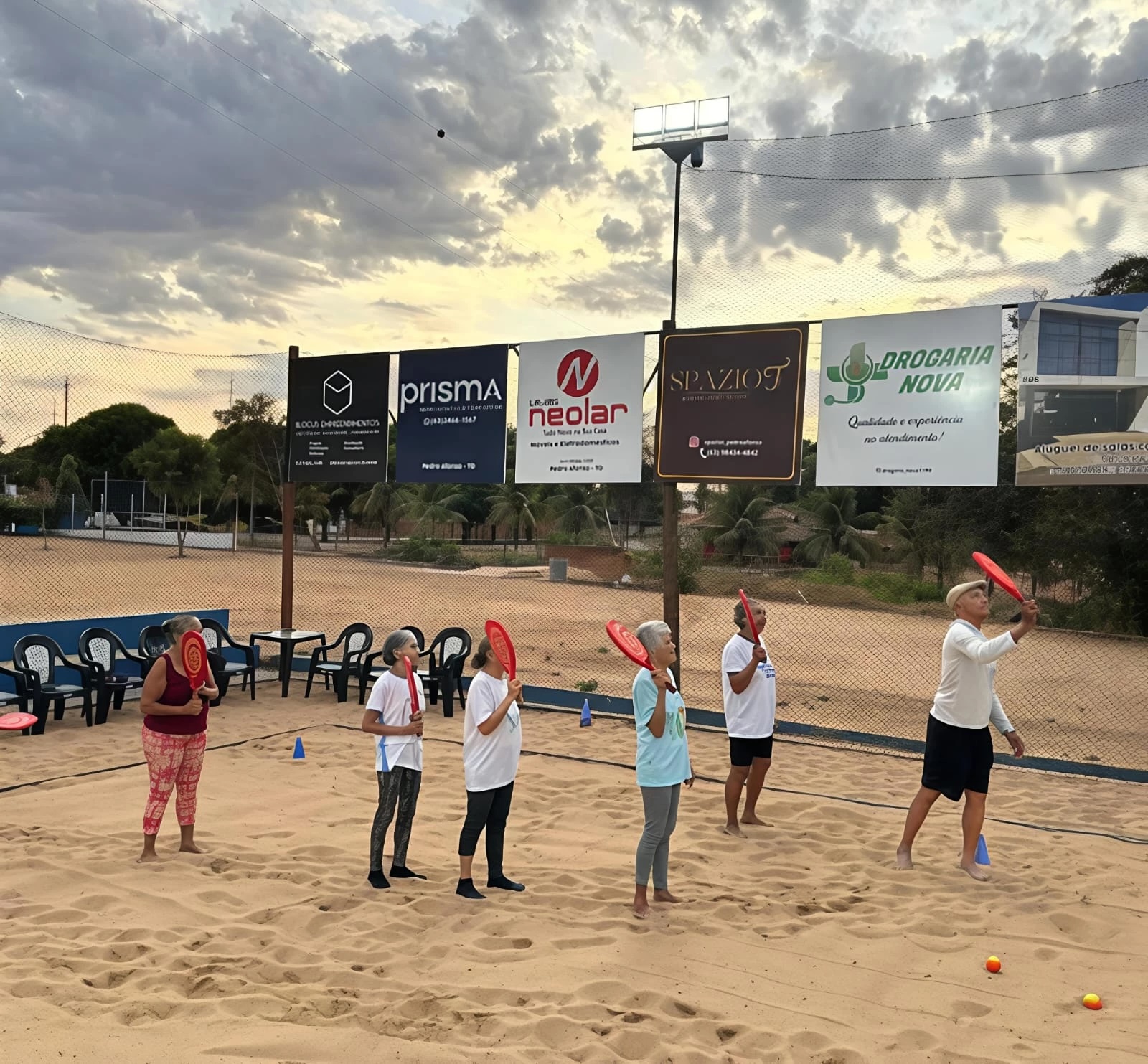 A Prefeitura de Pedro Afonso, por meio da Secretaria Municipal de Assistência Social, da Mulher e do Trabalho, segue transformando a rotina da terceira idade com o projeto Bem Viver na Melhor Idade. Realizada na Arena Rios Beach, a iniciativa atende idosos cadastrados na rede municipal, oferecendo uma combinação de aulas de beach tênis e exercícios de fortalecimento muscular e funcional.